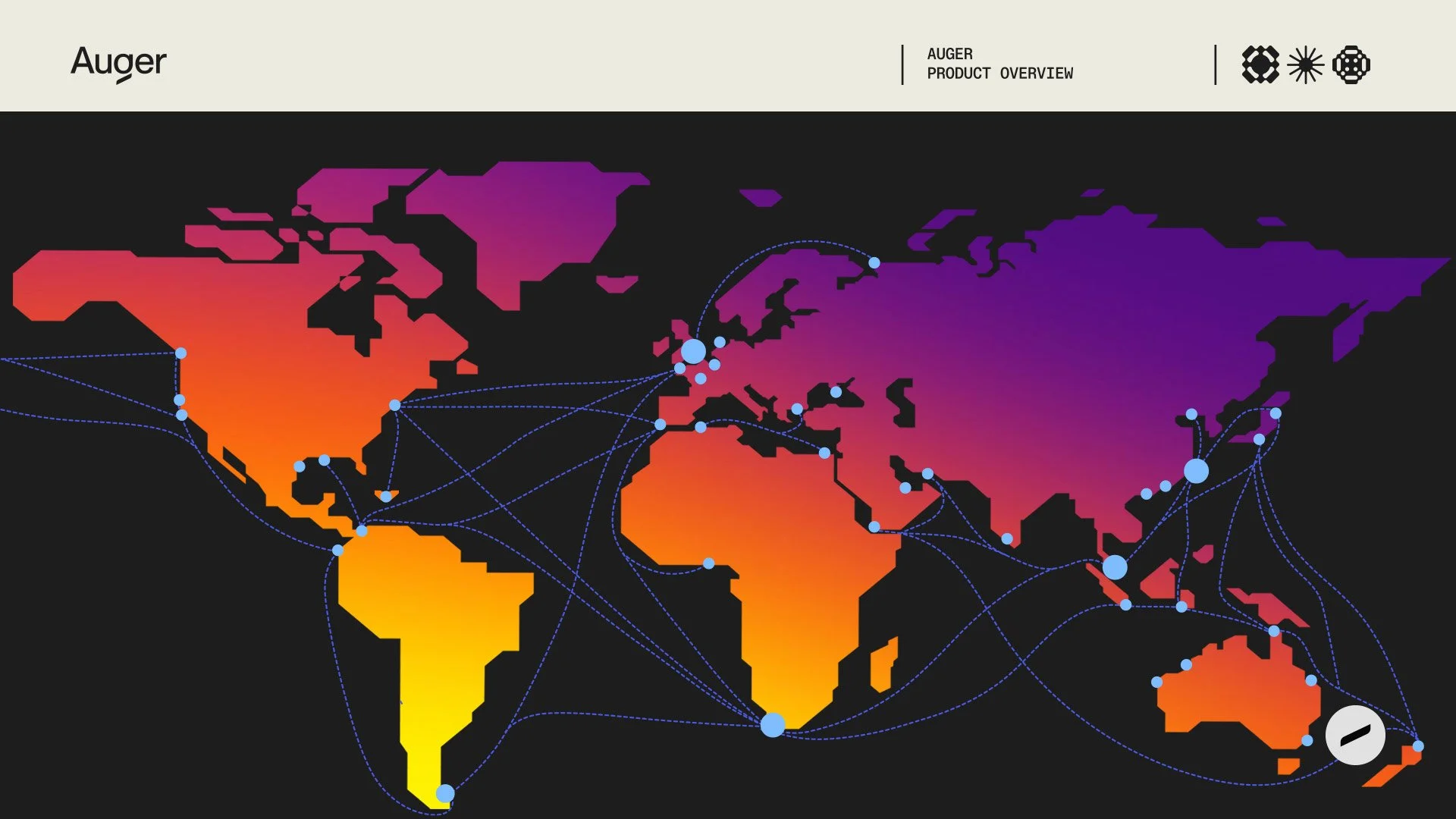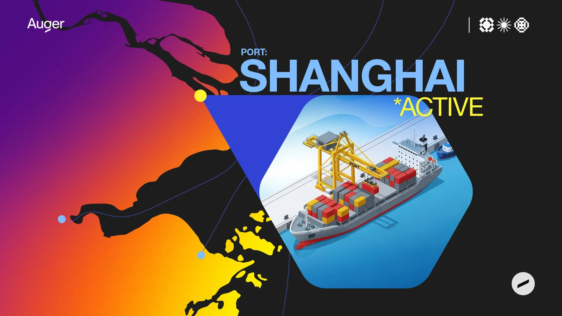Centers on a live exchange between a supply chain leader and Auger’s AI, “Eight,” visualizing real-time decisions across global logistics, inventory, and capital. Designed to align with the visual language of the booth while clearly demonstrating the system in action.
